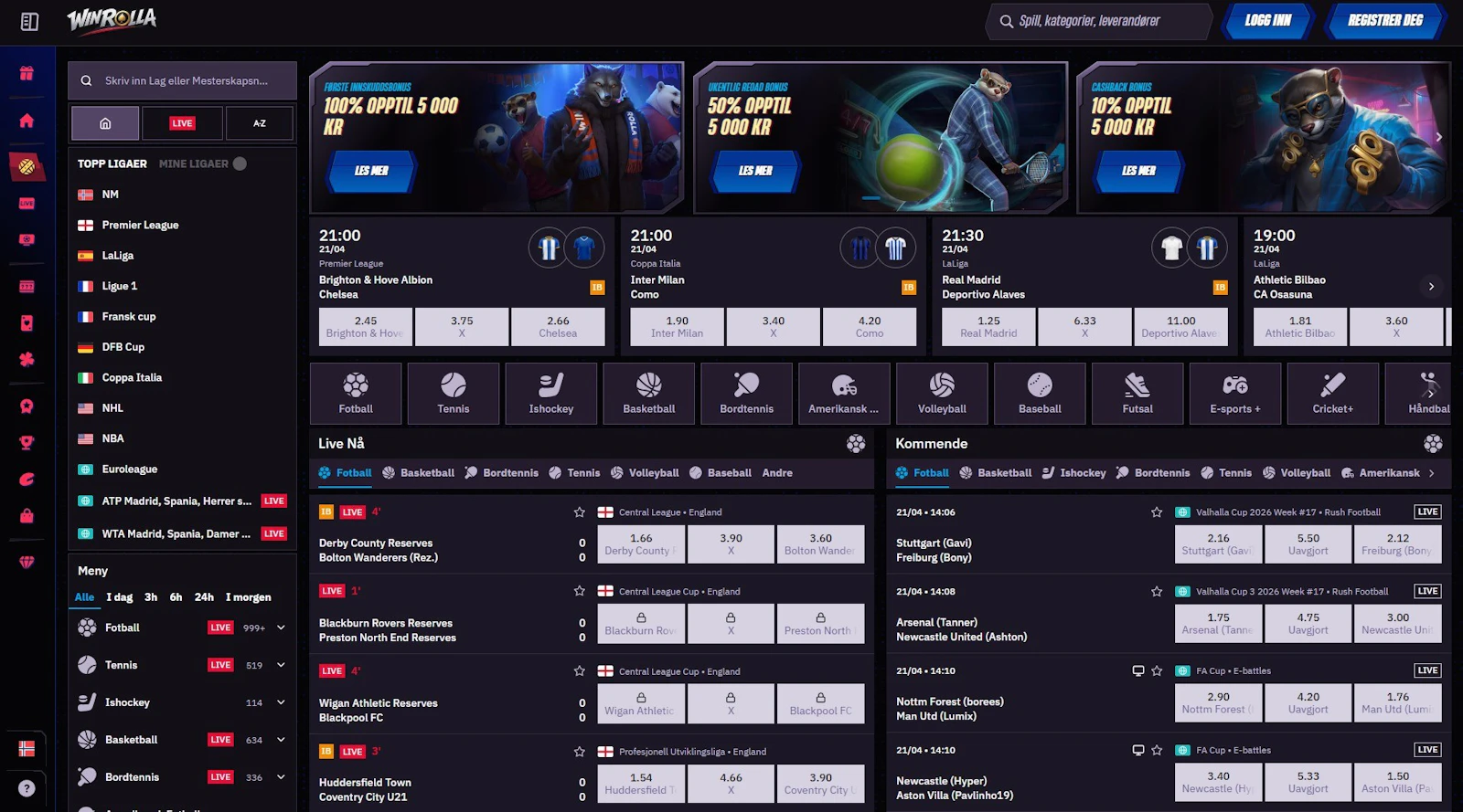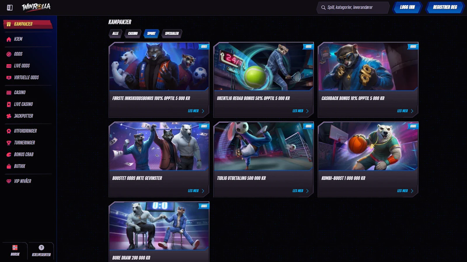 Winrolla fremstår som et helhetlig spillselskap med et godt utvalg av spill innen både odds og casino. Velkomstbonusen for sport har et relativt høyt maksbeløp, og du kan i tillegg sikre deg jevnlige påfyllingsbonuser og cashbackbonuser. Du har god dekning av betalingsmetoder, inkludert de fleste typer kryptovaluta, i Norge.